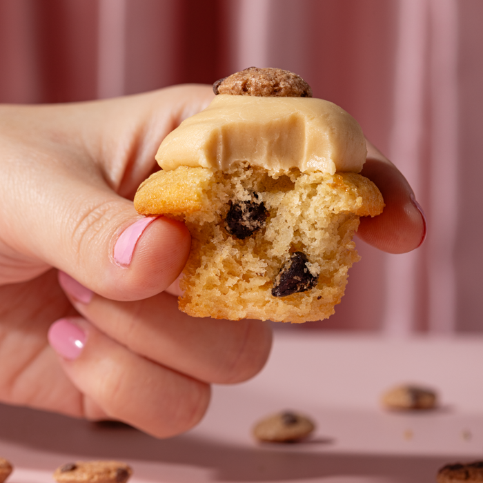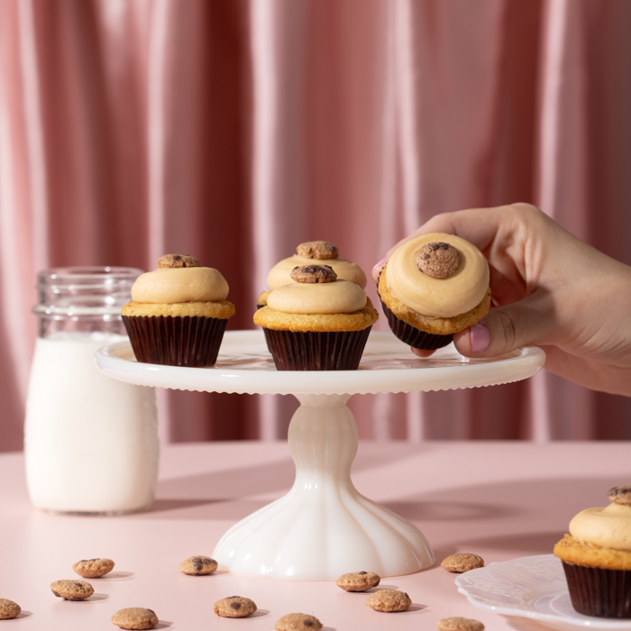Introducing our newest mini cupcake flavor! Our Cookie mini features chocolate chip studded yellow cake topped with brown sugar frosting and a mini cookie. Perfect for sharing with friends or treating yourself to a variety of sweet indulgences. Available exclusively as a dozen, these mini cupcakes are sure to satisfy any craving. Order yours today!