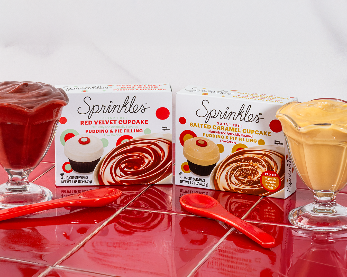 Indulge in your favorite bakery flavors at home with Sprinkles' NEW sugar-free pudding mixes. Ready in minutes, now available in Red Velvet and Salted Caramel.